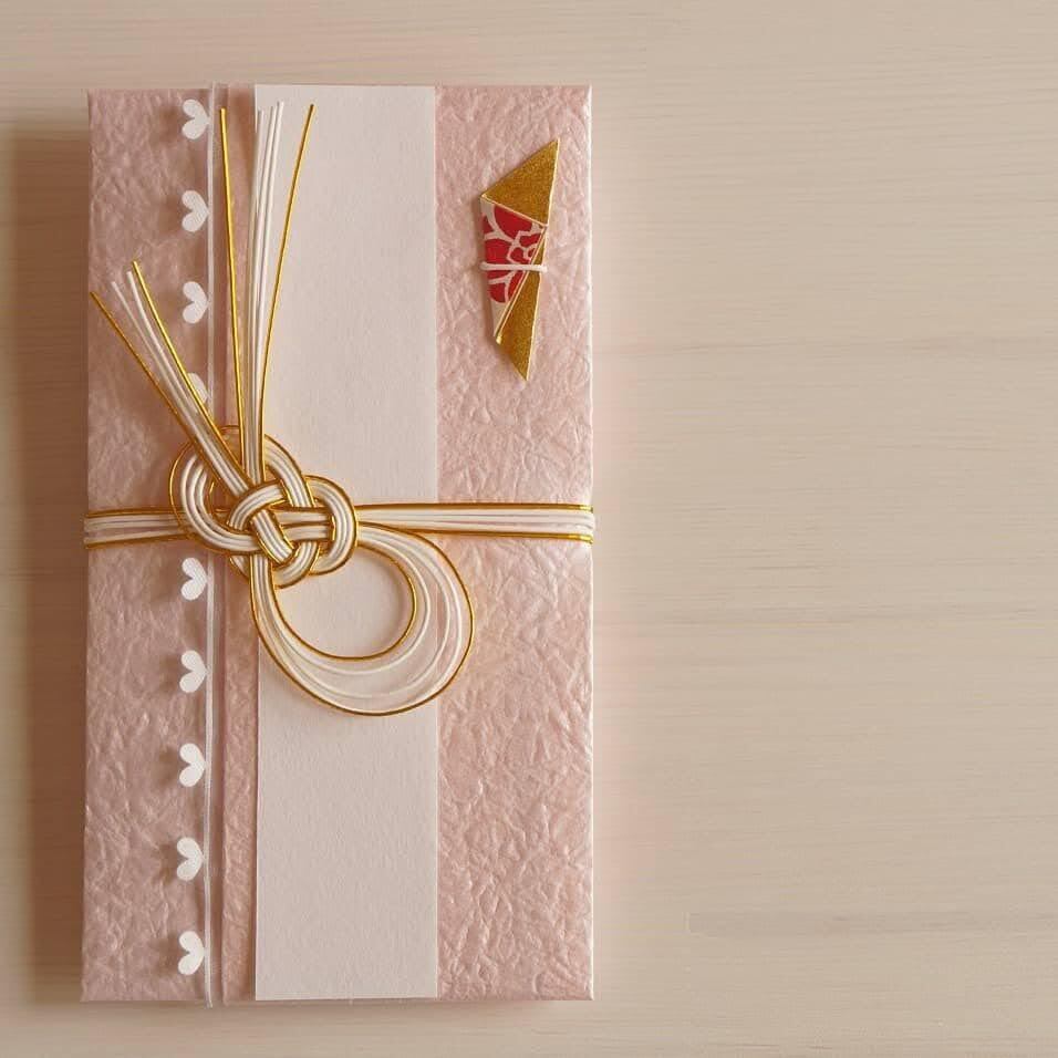 のし部分にアクセントとして赤い花柄の千代紙を使用しています。